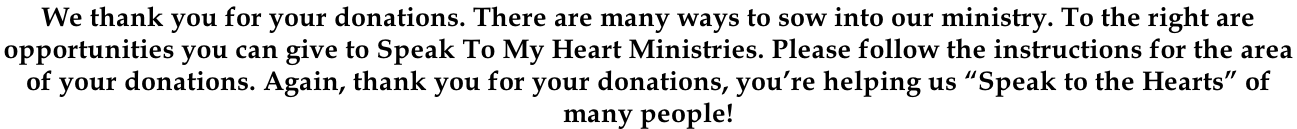 This website and its content is a copyright of Bishop Duane Johnson & Speak To My Heart Ministries © 2023-2024. All rights reserved. Any unauthorized redistribution or reproduction of part or all of the contents in any form is strictly prohibited.
